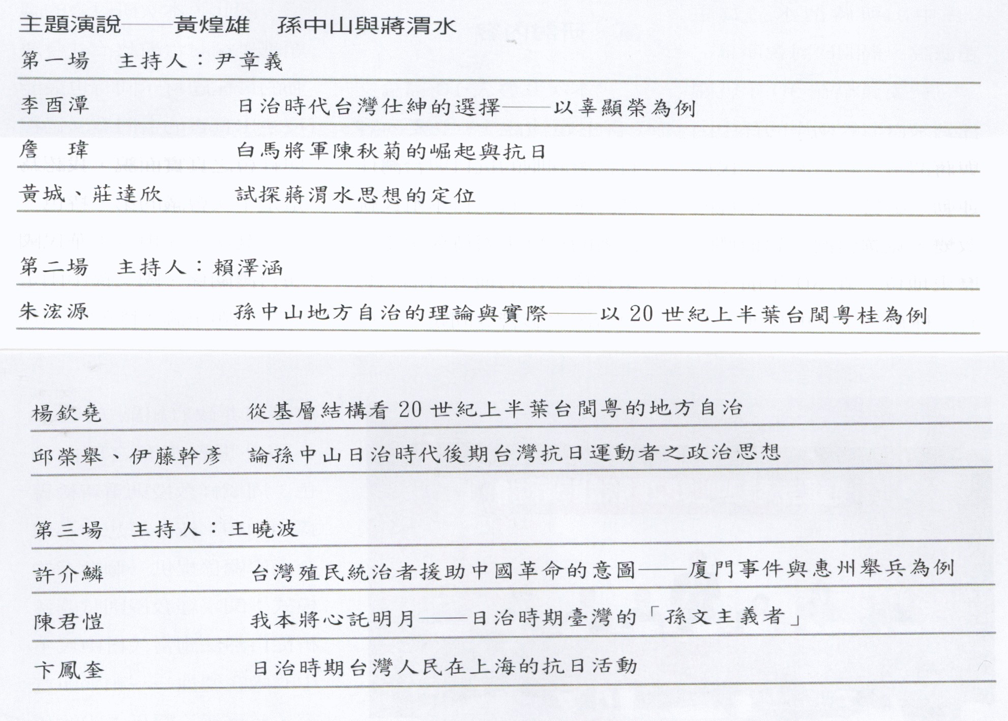 附錄:「孫中山與日本殖民時期台灣政治社會運動」學術研討會目次